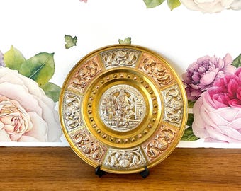 Vintage Ganesha Thanjavur Plate - Copper, Silver & Brass Decor